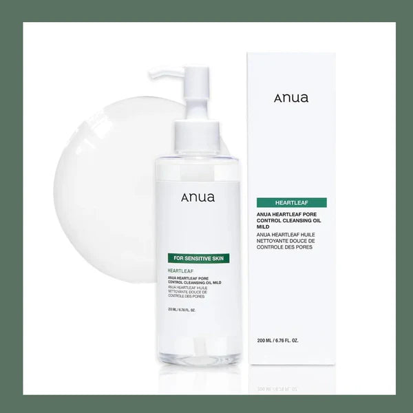 Cleanse gently but deeply with the Anua Heartleaf Pore Control Cleansing Oil Mild — a lightweight yet effective oil cleanser that melts away makeup, SPF, and impurities while keeping sensitive skin calm and balanced. Powered by Heartleaf (Houttuynia Cordata) extract, known for its anti-inflammatory and skin-soothing properties, this formula targets clogged pores, excess sebum, and skin irritation without leaving a greasy residue.