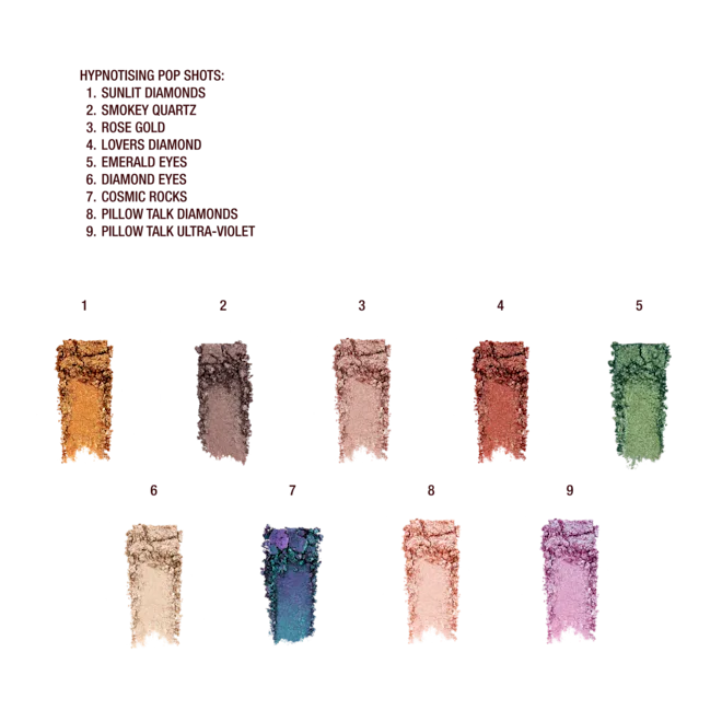 Charlotte Tilbury Hypnotising Pop Shots, Charlotte Tilbury liquid eyeshadow, sparkling liquid eyeshadow, liquid to powder eyeshadow shimmer, long lasting glitter eyeshadow, crease resistant liquid eyeshadow, high shine eye makeup, Charlotte Tilbury eye shimmer for glam looks, multidimensional eye pigment, luxury liquid eyeshadow.