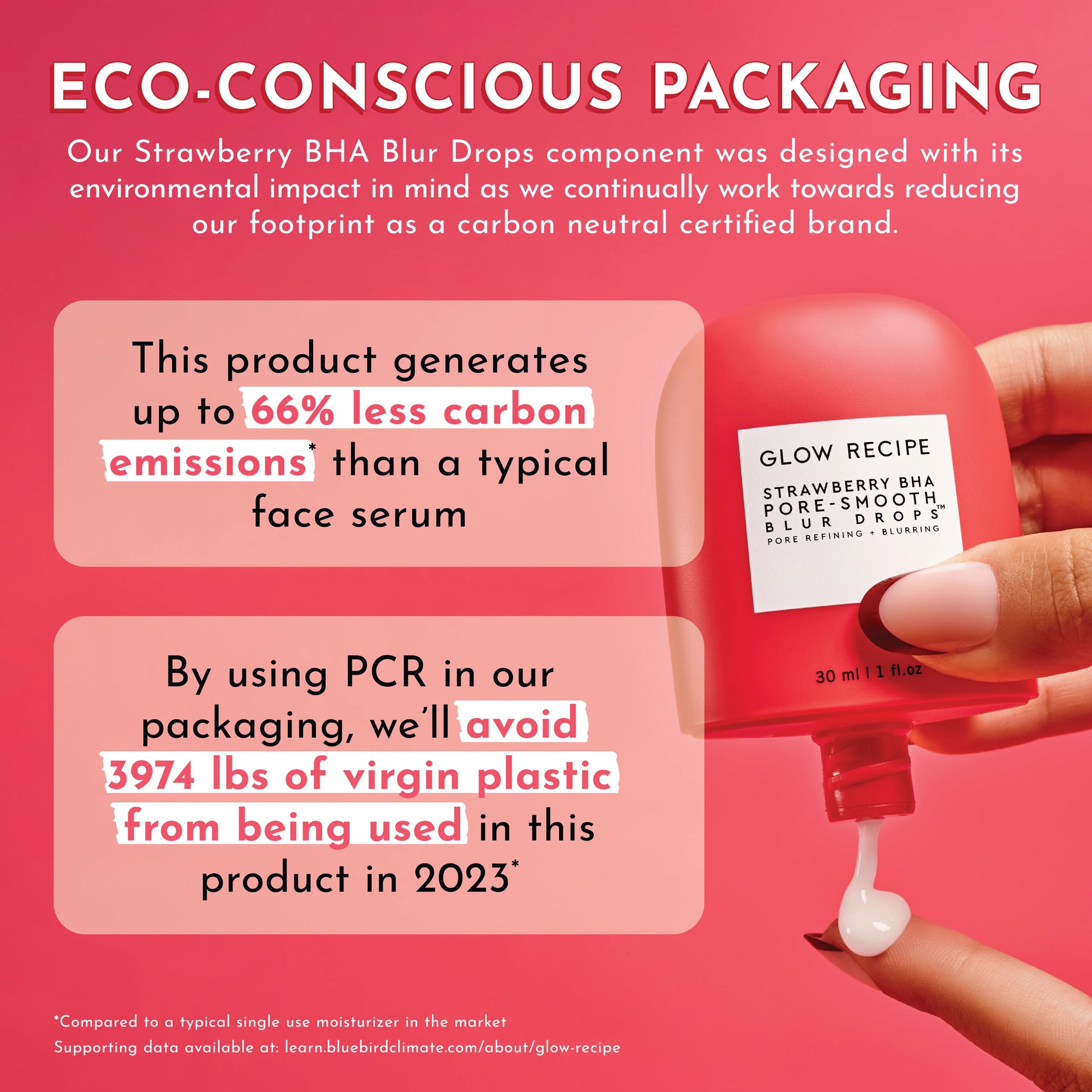 Strawberry BHA Pore-Smooth Blur Drops, Glow Recipe blur primer, silicone-free pore blurring, mattifying skincare primer, BHA smoothing drops, satin-pillow skincare, pore refining serum primer