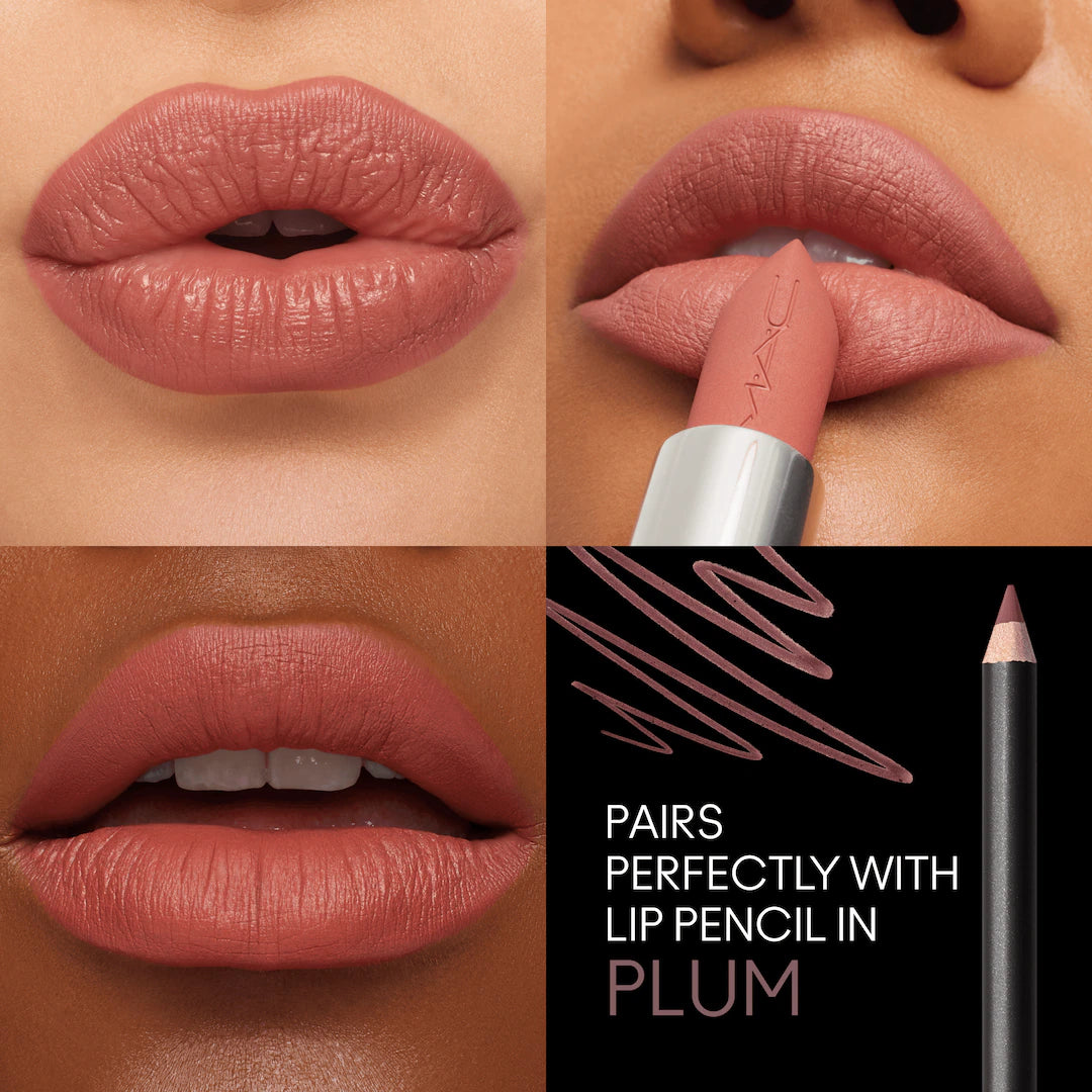 M·A·CXIMAL Silky Matte Lipstick delivers full-coverage pigment-rich colour with coconut oil, organic shea butter, and cocoa butter for 12-hour comfortable wear that nourishes lips while providing ultra-vibrant matte finish.